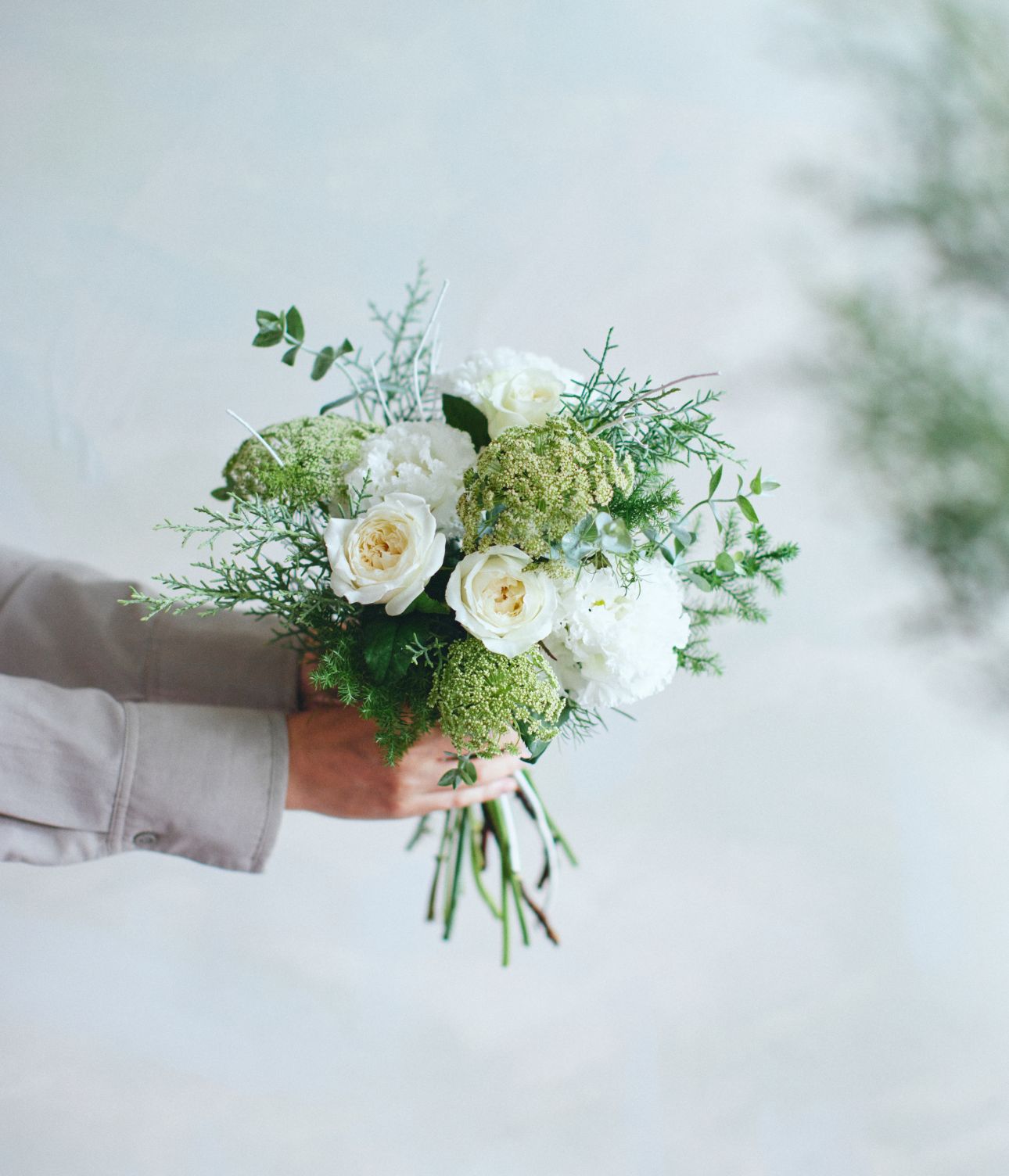 ナチュラルでいてどこか凛とした佇まいのブーケに仕上がります。