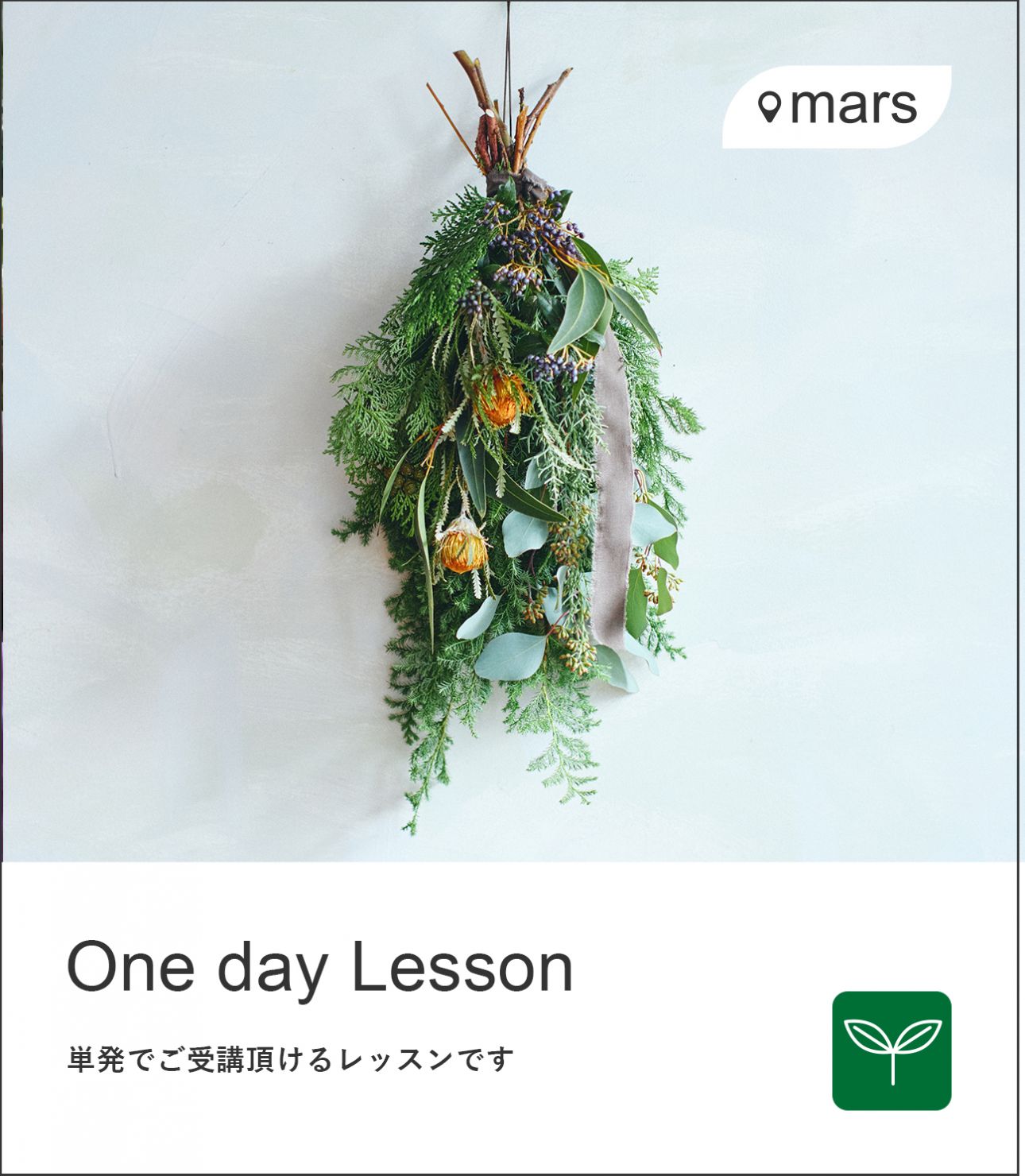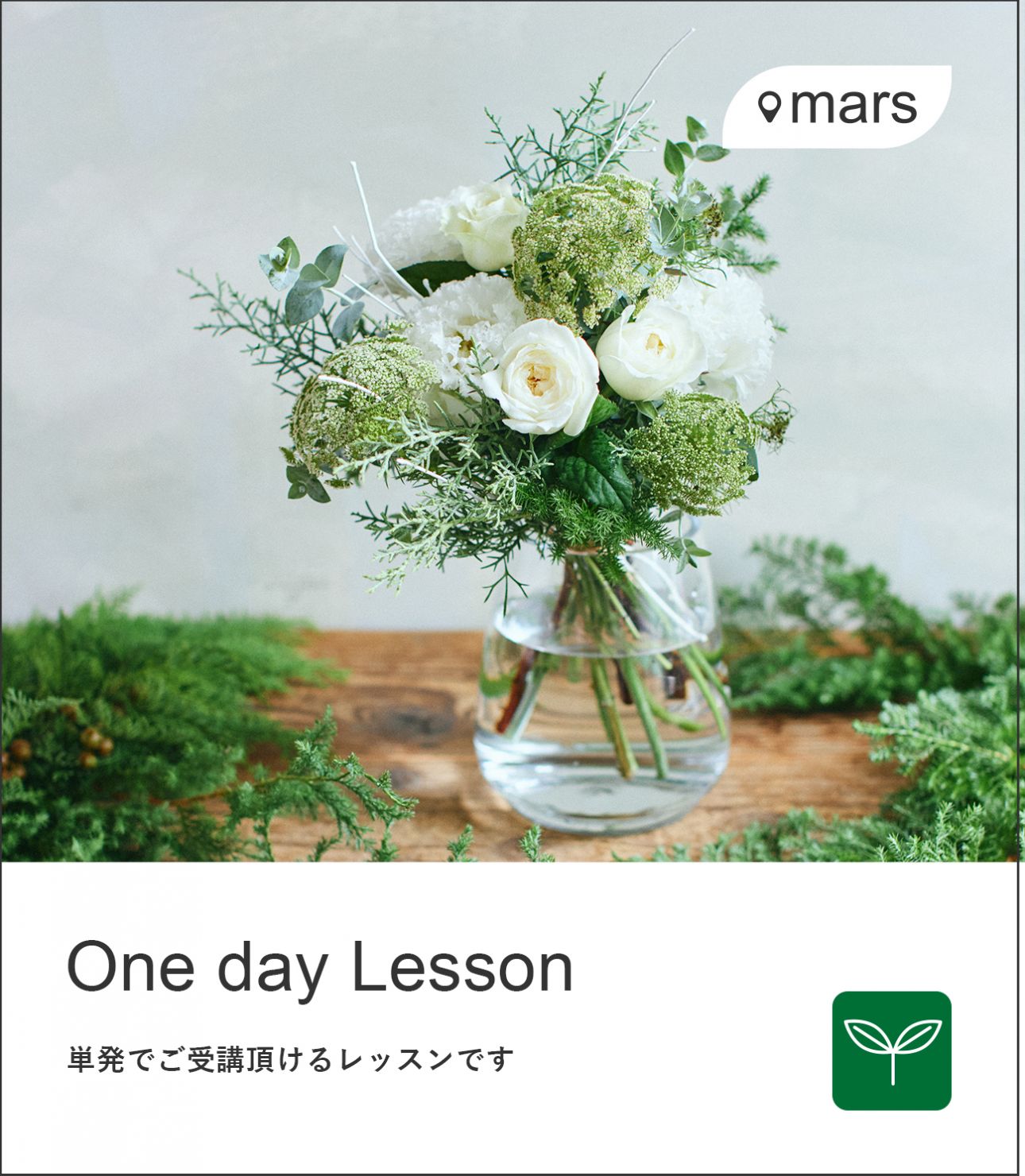 時間のない方がサクッと旬お花のレッスンが受けれる平日限定レッスンです♪