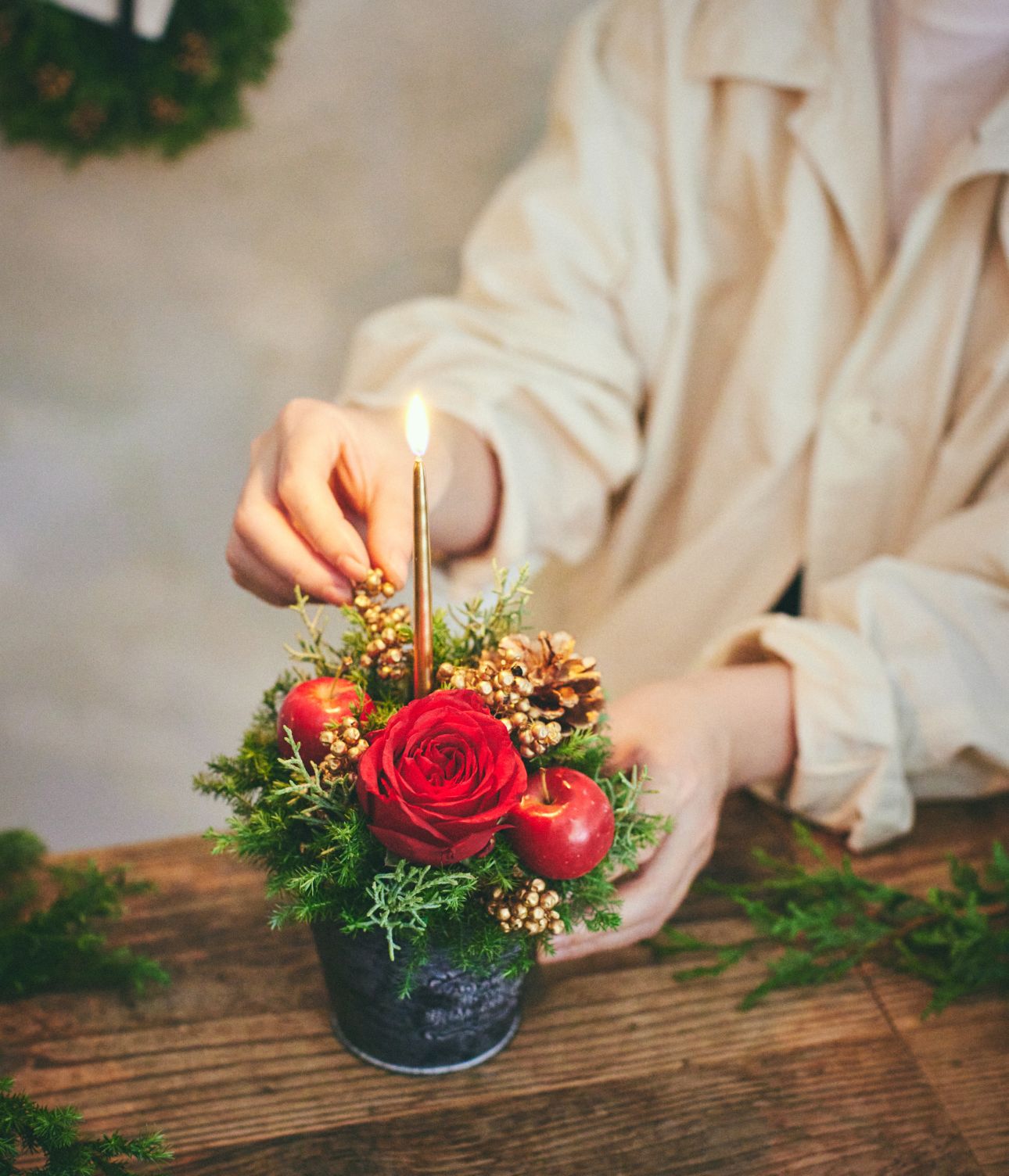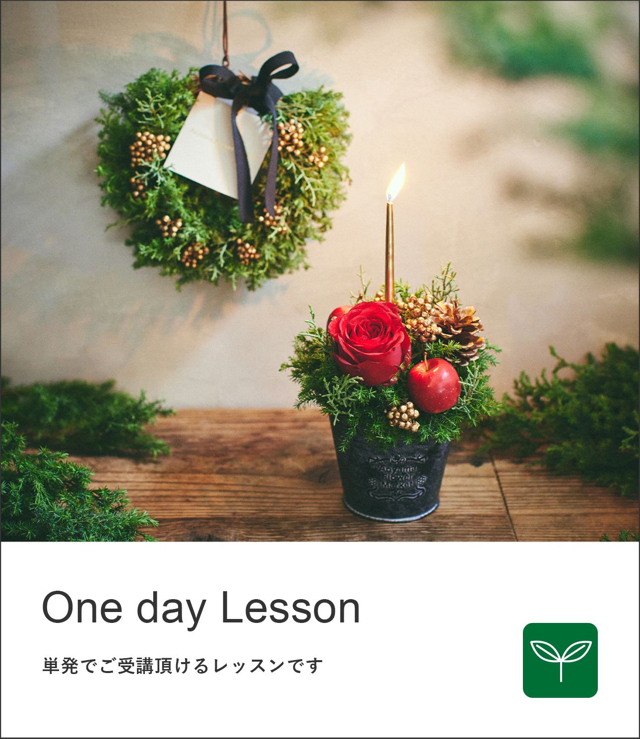 リースとキャンドルアレンジを作れる